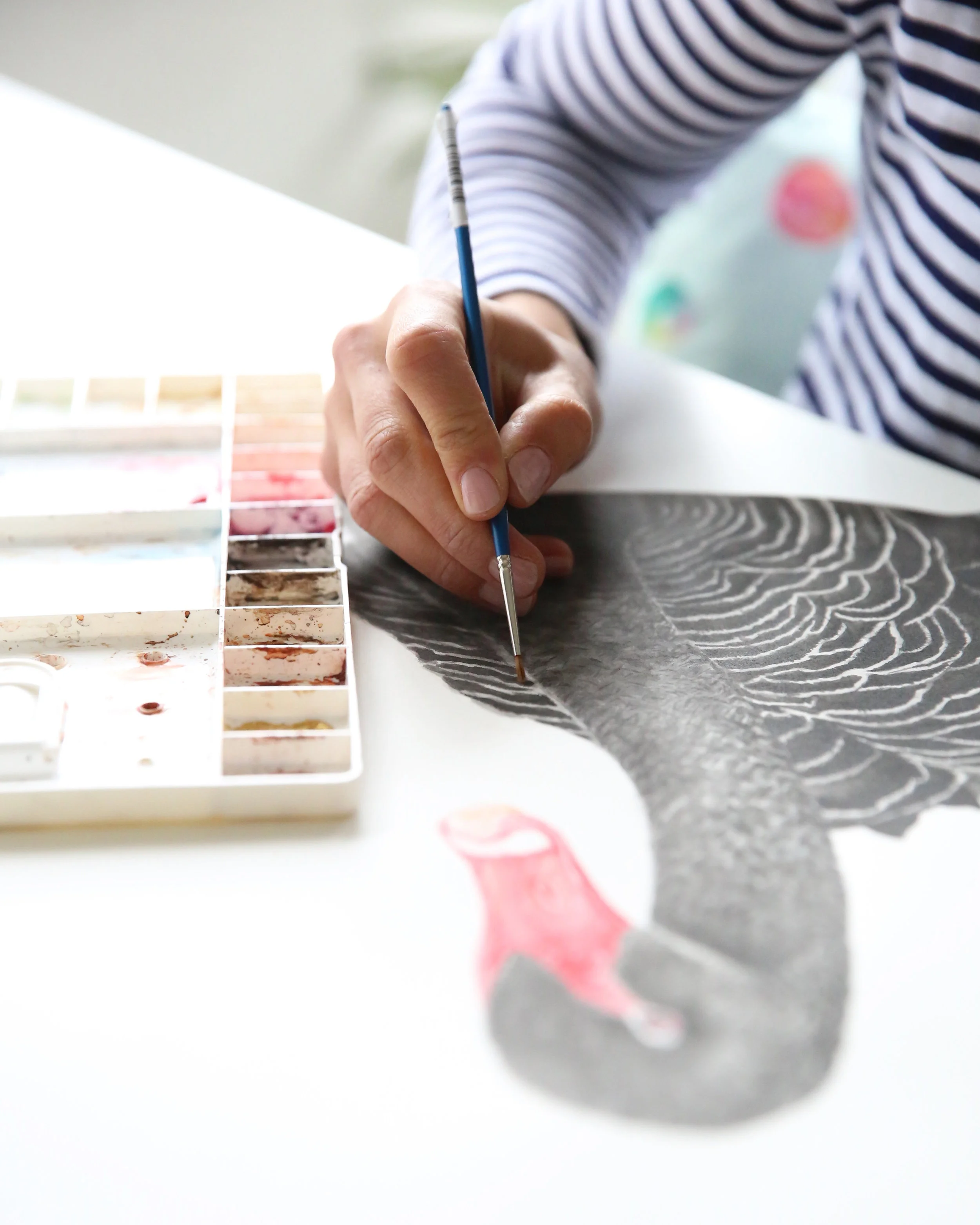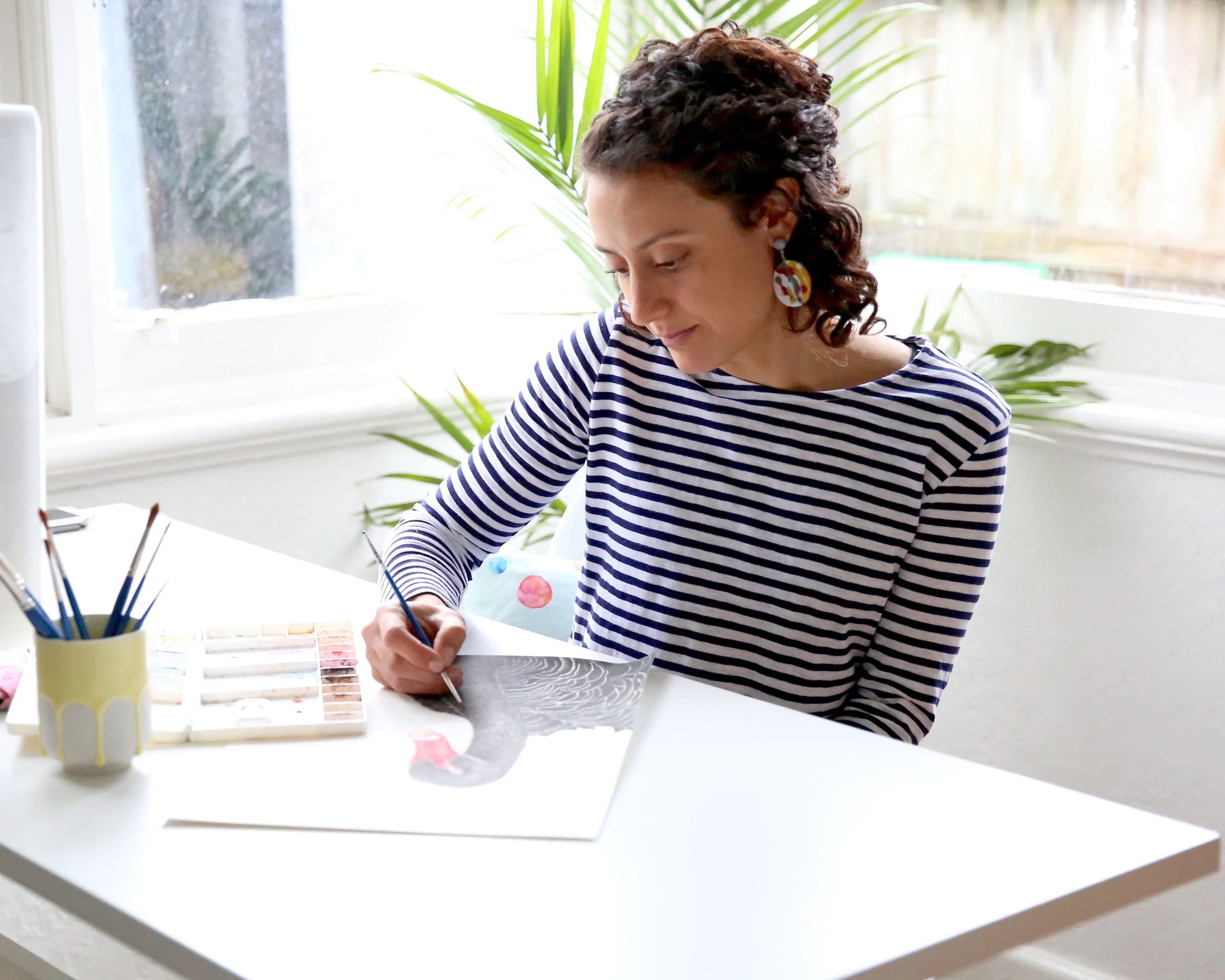 Dee meticulously hand paints unique animal themed greeting cards, prints, pillowcases, tea towels and even does custom pet portraits.